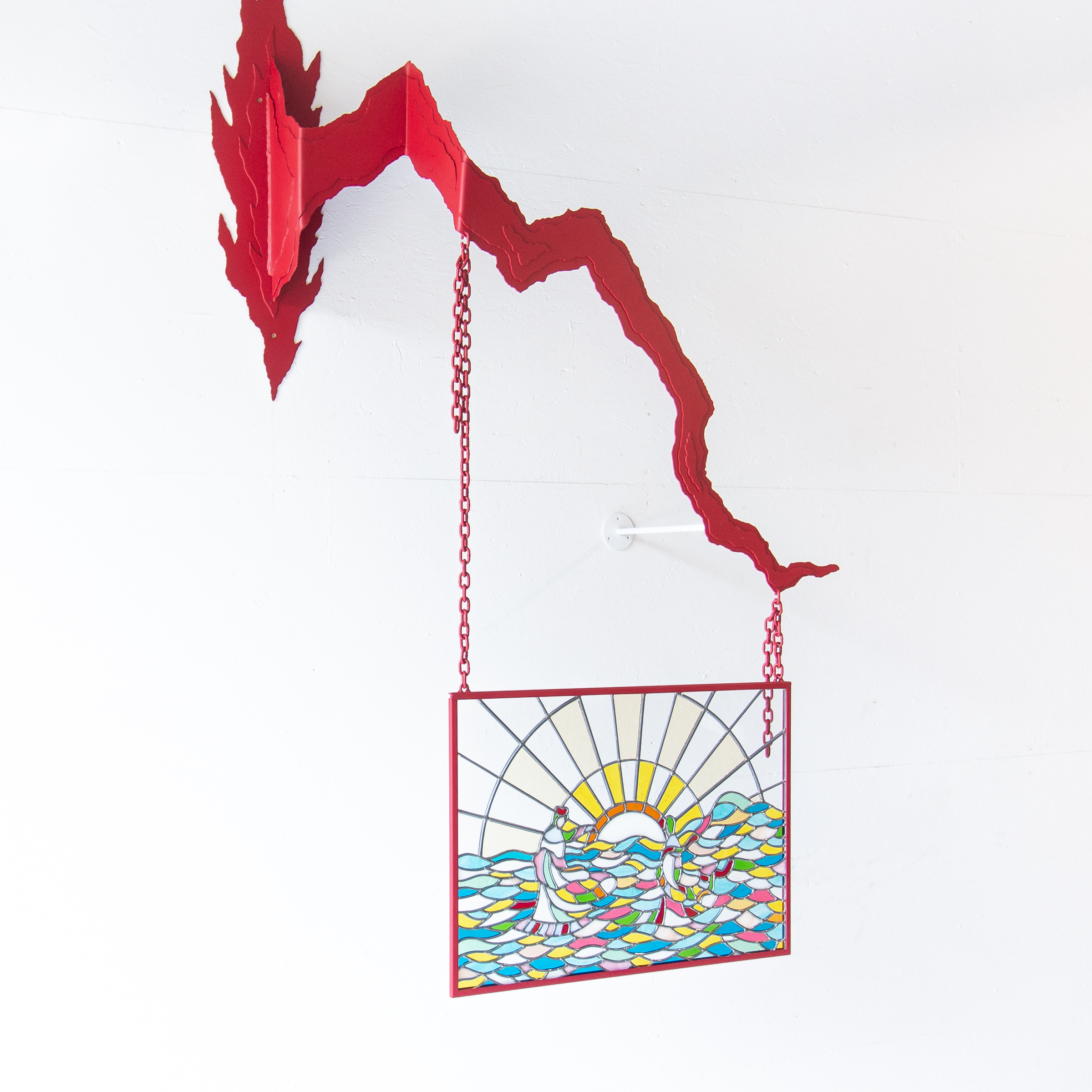 Stained glass window, powder coated steel